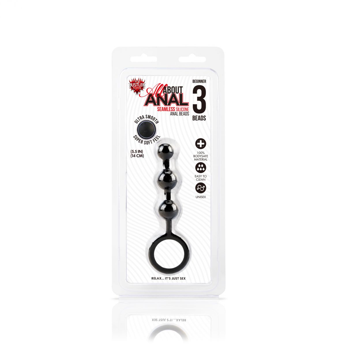 Самый лучший мягкий и упругий материал для анальных игрушек — силикон. HUSTLER превзошел сам себя — черные ультрабархатистые и нежные силиконовые бусы, состоящих из 3 шариков. Материал быстро нагревается до температуры кожи человека, за изделием не требуется никого специального ухода. Минимальный диаметр — 1,5 см.
